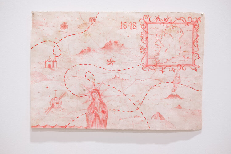This October 23th Gabiella brings to Western New Mexico University her exhibition Made of This Place, wich tells stories of belonging and identity in the US-Mexico Borderlands through a series of flags, maps, and paintings. Gabriella Flynn uses layered iconography to juxtapose mainstream perceptions of the American Southwest against the lived experience. Immersed in the vernacular of the American Southwest and inspired by the collective memory of the region, the exhibition guides audiences through the physical, psychological, and cultural landscapes of the Chihuahuan Desert.